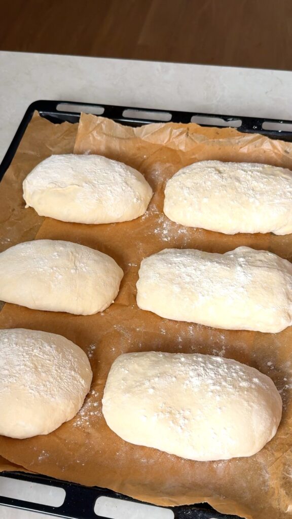 - Shape and rest. Turn the dough out onto a floured surface. Divide into 6 equal pieces and shape each into a round roll. Place them on a parchment-lined baking tray with some space between them. Score the tops with a sharp knife. Leave to rest on the tray for 15 minutes.