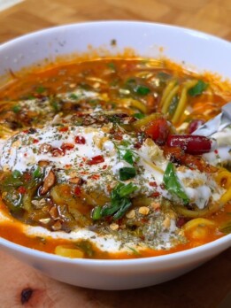 Aush – Afghan Noodle Soup with Hot Garlic Oil
