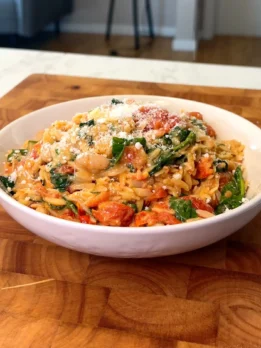 One-Tray Baked Orzo with Roasted Cherry Tomatoes: Creamy, Flavorful, and Easy