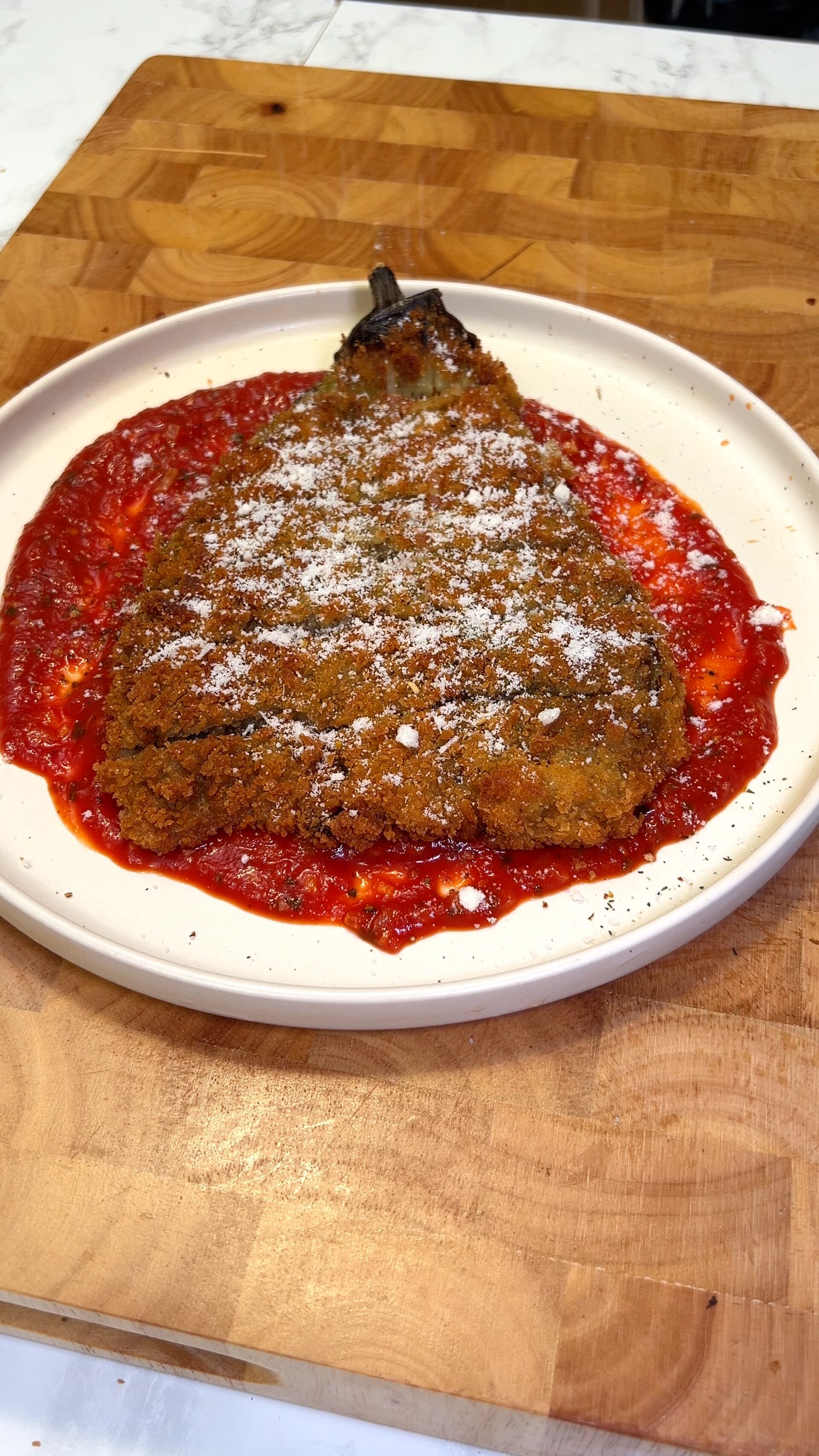 This dish is best served hot, with the crispy eggplant and smooth marinara sauce providing a delightful contrast in textures. Whether as a main dish or an appetizer, it’s a versatile choice suitable for any dining occasion. The depth of flavors and satisfying crunch make this a crowd-pleaser, perfect for gatherings or a special family meal. Enjoy the culinary journey as each bite brings a burst of flavor and a moment of pure joy.